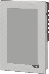 Power Panel T30, 7.0", portrait format. CPU and memory: 600 MHz (ARM Cortex-A8), 512 MB onboard flash drive. Display and touch screen: 7.0", 480 x 800 (WVGA) resolution, analog resistive touch screen, portrait format, aluminum white pinstripe. Interfaces: 2x Ethernet 10/100 Mbit/s (integrated switch), 2x USB 2.0. Client software: Integrated service page, VNC client, embedded web browser.