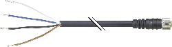 M8 power attachment cable, 50m long, 4c x 0.5mm², black polyurethane (PUR), core colours brown, black, blue, white,