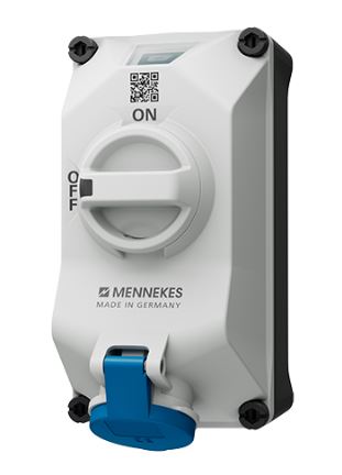 MENNEKES, 5611306H, DUOi Wall Mounted Switched Outlet With Auxiliary Contacts 1 x N/C + 1 x N/O, Socket 2P+E, Blue, 16 Amp, 230V AC, 6H, IP44