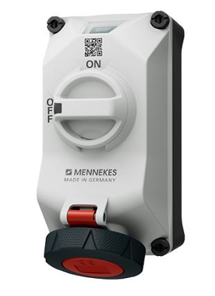MENNEKES, 5612506H, DUOi Wall Mounted Switched Outlet With Auxiliary Contacts 1 x N/C + 1 x N/O, Socket 3P+N+E, Red, 16 Amp, 400V AC, 6H, IP67