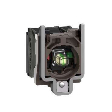 XB4 Series, Pre-Assembled Fixing Collar with universal LED light block (protected LED) and 1 x N/O and 1 x N/C contact block, screw clamp terminal connections