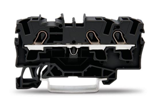 Quick and easy connections are guaranteed with this through terminal block (item number 2004-1305). Whether for industrial or building applications, you can use our through terminal blocks to connect electrical conductors quickly and safely. We offer variants for both classic through-wiring and potential distribution. Our through rail-mount terminal block is rated for 800 V and is designed for use with a rated current of up to 32 A. Conductors should only be connected to this through terminal block if their strip length is between 11 mm and 13 mm. This product features conductor terminals and utilizes Push-in CAGE CLAMP®. Our Push-in CAGE CLAMP® is a universal, maintenance-free connection solution for all conductor types, offering a key advantage: It allows direct insertion of both solid and fine-stranded conductors with ferrules without needing tools. No preparation is required; for example, crimping the conductor's ferrule is not necessary. The item's dimensions are 6.2 x 65.5 x 39.5 mm (width x height x depth). This through terminal block is suitable for conductor cross sections ranging from 0.5 mm² to 6 mm². It has one level. You can connect a single potential using the three clamping points. The black housing is made of polyamide (PA66) for insulation. An operating tool is used to operate this through rail-mount terminal block. Our TOPJOB® S rail-mount terminal blocks guarantee reliable electrical connections across many different industrial applications and modern building installations. They simplify wiring, as you can quickly plug in solid, stranded, and fine-stranded conductors with ferrules. These through rail-mount terminal blocks are mounted using DIN-35 rails.. The front-entry wiring allows you to connect copper conductors. The two jumper slots enable potential distribution to other clamping points. This product is designed for specific Ex applications (please refer to the product datasheet).