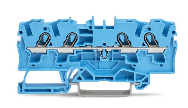 Easily, quickly and safely connect conductors with this through terminal block (item number 2004-1404). Whether in industrial or building applications, our rail-mount through terminal blocks are the perfect solution to quickly and securely connect electrical conductors. Depending on the model, you can use them for either typical through-wiring or potential distribution. This through rail-mount terminal block has a rated voltage of 800 V and can handle currents up to 32 A. Ensure that the strip lengths are between 11 mm and 13 mm when connecting conductors to this through terminal block. This product features conductor terminals and utilizes Push-in CAGE CLAMP®. Push-in CAGE CLAMP® technology provides a universal connection solution for all conductor types. It allows both solid and fine-stranded conductors with ferrules to be inserted directly into the clamping point without the need for tools. Dimensions: 6.2 x 78.7 x 39.5 mm (width x height x depth). This through terminal block is suitable for conductor cross sections ranging from 0.5 mm² to 6 mm². It has one level. You can connect a single potential using the four clamping points. The blue housing is made of polyamide (PA66) for insulation. This through rail-mount terminal block is operated with an operating tool. Our TOPJOB® S rail-mount terminal blocks guarantee secure electrical connections across many industrial applications and modern building installations. They make wiring work easier as you can quickly plug in solid, stranded, and fine-stranded conductors with ferrules. These through rail-mount terminal blocks are mounted using DIN-35 rails.. The front-entry wiring allows you to connect copper conductors. The two jumper slots enable potential distribution to other clamping points. This product is designed for specific Ex applications (please refer to the product datasheet).