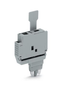This fuse plug (item number 2004-911) simplifies electrical installations. The gray housing is made of polyamide (PA66) for insulation.