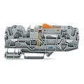 Our disconnect terminal block (item number 2006-1671/1000-850) simplifies electrical installations. Conductors should only be connected to this disconnect terminal block if their strip length is between 13 mm and 15 mm. This product features conductor terminals and utilizes Push-in CAGE CLAMP®. Push-in CAGE CLAMP® technology provides a universal connection solution for all conductor types. It allows both solid and fine-stranded conductors with ferrules to be inserted directly into the clamping point without the need for tools. Depending on the type of conductor, this disconnect terminal block is designed for conductor cross sections ranging from 0.5 mm² to 10 mm². It features one level and four clamping points that you can use to connect two potentials. The gray housing is made of polyamide (PA66) for insulation. These function terminal blocks are mounted using DIN-35 rails.