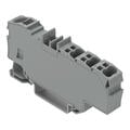 Our distribution terminal block (item number 2006-8031) is designed for seamless electrical installations. Distribution terminal blocks allow you to distribute potentials with a single extremely compact terminal block. Their design also means you can connect larger conductor cross-sections on one side and several smaller conductor cross-sections on the other. Aside from potential distribution, these terminal blocks can also be used for potential collection. Rated current and voltage are important parameters when choosing a through rail-mount terminal block, as they indicate possible applications and uses. This product has a rated voltage of 800 V and a rated current of 41 A. Ensure that the strip lengths are between 13 mm and 15 mm when connecting conductors to this distribution terminal block. Featuring conductor terminals along with Push-in CAGE CLAMP® as well as Push-in CAGE CLAMP®, this product is highly versatile. Our Push-in CAGE CLAMP® is a universal, maintenance-free connection solution for all conductor types, offering a key advantage: It allows direct insertion of both solid and fine-stranded conductors with ferrules without needing tools. No preparation is required; for example, crimping the conductor's ferrule is not necessary. This distribution terminal block is suitable for conductor cross sections ranging from 0.5 mm² to 10 mm² on one side and for conductor cross sections ranging from 0.25 mm² to 2.5 mm² on the other side. It comes with one level and seven clamping points for connecting a single potential. The clamping spring is made of chrome-nickel spring steel (CrNi) and the gray housing is made of polyamide (PA66) for insulation. An operating tool is used to operate this through rail-mount terminal block. Our TOPJOB® S rail-mount terminal blocks offer more than just secure electrical connections in various industrial applications and modern building installations. They also offer the perfect actuation variant for every need: lever, push-button, or operating slot. These through rail-mount terminal blocks are mounted using DIN-35 rails.. You can connect copper conductors thanks to front-entry wiring. The two jumper slots enable potential distribution to other clamping points.