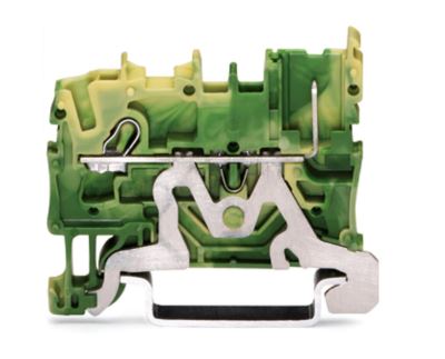 Connecting conductors is quick and easy with this ground terminal block (item number 2022-1207). Our ground terminal blocks create a direct connection between the mounting rail and the electrical conductors thanks to an integrated mounting foot. This connection ensures both electrical and mechanical stability between the conductors and the mounting adapter. Strip lengths must be between 10 mm and 12 mm when connecting conductors to this ground terminal block. This product incorporates conductor terminals and utilizes Push-in CAGE CLAMP®. Push-in CAGE CLAMP® connection technology is ideal for connecting all conductor types. Both solid and fine-stranded conductors with ferrules can be pushed in without the need for tools—all thanks to its pluggable design. Depending on the type of conductor, this ground terminal block is suitable for conductor cross sections ranging from 0.25 mm² to 4 mm². It comes with one level and a clamping point for connecting a single potential. The green-yellow housing is made of polyamide (PA66) for insulation. This pluggable rail-mount terminal block is operated with an operating tool. These pluggable rail-mount terminal blocks are mounted using DIN-35 rails.. The front-entry wiring means you can connect copper conductors.