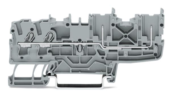 Quick and easy connections are guaranteed with this through terminal block (item number 2022-1401). Pluggable rail-mount terminal blocks are hugely popular in switchgear and control systems, for example, in railroad technology. They combine the best of rail-mount terminal blocks and connectors for the perfect solution. Variable wiring systems make pre-assembly easy, which leads to considerable time and cost savings in production, installation, operation, and maintenance. This pluggable rail-mount terminal block has a rated voltage of 690 V and can handle currents up to 24 A. Strip lengths must be between 10 mm and 12 mm when connecting conductors to this through terminal block. This product features conductor terminals and utilizes Push-in CAGE CLAMP®. Push-in CAGE CLAMP® connection technology is ideal for connecting all conductor types. It allows direct insertion of both solid and fine-stranded conductors with ferrules without the need for tools—all thanks to its pluggable design. Depending on the type of conductor, this through terminal block is ideal for conductor cross sections ranging from 0.25 mm² to 4 mm². It features one level and two clamping points for connecting a single potential. The gray housing is made of polyamide (PA66) for insulation. An operating tool is used to operate this pluggable rail-mount terminal block. These pluggable rail-mount terminal blocks are mounted using DIN-35 rails.. The front-entry wiring allows you to connect copper conductors.