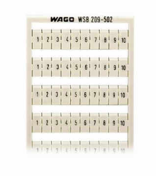 Wago, 209-502, WSB Marking Card, Horizontal Marking, Numbered 1-10, 5mm Wide, Snap-on Type, White, Card = 10 Strips Of 10 Markers Per Card