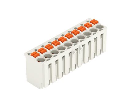 The female connector/socket with the article number 2091-1130 enables smooth electrical installation. Rely on reliable safety when designing your device: PCB connectors give you versatile application possibilities. This female connector/socket requires a stripping length of between 8 and 9 mm for the conductor connection. This product uses Push-in CAGE CLAMP® technology. Push-in CAGE CLAMP® connection technology is the universal connection for all conductor types with the added benefit of direct plugging. Rigid conductors as well as fine-stranded conductors with ferrules can be plugged directly into the terminal point without the need for tools. The dimensions are width x height x depth (35 x 14 x 11.4) mm. This female connector/socket is suitable for conductor cross-sections from 0.2 mm² to 1.5 mm², depending on the conductor type. The contact surface is made of tin. This female connector/socket is actuated using a push button. picoMAX® is the compact connector system with an innovative design. It utilizes the contact force of a single Cr-Ni steel spring for two purposes – both for connecting the conductor and for contacting the connector pin.