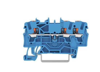 This through terminal block (item number 2202-1304) is designed to connect conductors quickly and easily. Whether in industrial or building applications, our rail-mount through terminal blocks are the perfect solution to quickly and securely connect electrical conductors. Depending on the model, you can use them for either typical through-wiring or potential distribution. Rated current and voltage are important parameters when choosing a through rail-mount terminal block, as they indicate how the product can be used. This product has a rated voltage of 800 V and a rated current of 24 A. Strip lengths must be between 10 mm and 12 mm when connecting conductors to this through terminal block. Featuring conductor terminals along with Push-in CAGE CLAMP®, this connector delivers reliable performance. Push-in CAGE CLAMP® connection technology is ideal for connecting all conductor types. Both solid and fine-stranded conductors with ferrules can be plugged in without needing to use any tools—all thanks to its pluggable design. Dimensions: 5.2 x 59.2 x 39.5 mm (width x height x depth). Depending on the conductor type, this through terminal block is suitable for conductor cross sections ranging from 0.25 mm² to 4 mm². It features one level and three clamping points that you can use to connect a single potential. The blue housing is made of polyamide (PA66) for insulation. This through rail-mount terminal block is operated with a push-button. Our TOPJOB® S rail-mount terminal blocks are perfect for many different industrial applications and modern building installations as they provide secure electrical connections. You can work anywhere in the world and on any application with just a single rail-mount terminal block system. These through rail-mount terminal blocks are mounted using DIN-35 rails.. The front-entry wiring makes it possible to connect copper conductors. The two jumper slots enable potential distribution to other clamping points. This product is designed for specific Ex applications (please refer to the product datasheet).