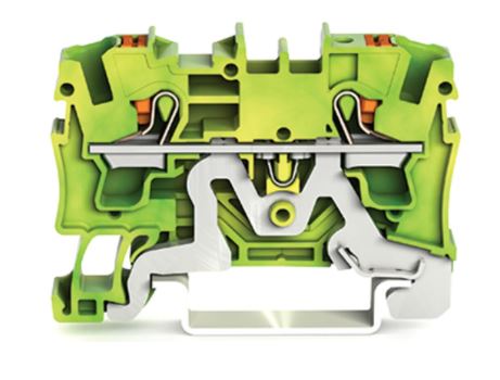 This ground terminal block (item number 2204-1207) is designed for quick and easy connections. Our ground terminal blocks create a direct connection between the mounting rail and the electrical conductors thanks to an integrated mounting foot. This connection ensures both electrical and mechanical stability between the conductors and the mounting adapter. Ensure that the strip lengths are between 11 mm and 13 mm when connecting conductors to this ground terminal block. This product incorporates conductor terminals and utilizes Push-in CAGE CLAMP®. Our Push-in CAGE CLAMP® is a universal, maintenance-free connection solution for all conductor types, offering a key advantage: both solid and fine-stranded conductors with ferrules can be directly inserted without the need for tools or any preparation, such as crimping the ferrule. This ground terminal block is suitable for conductor cross sections ranging from 0.5 mm² to 6 mm². It has one level. The single potential can connect using the two clamping points The green-yellow housing is made of polyamide (PA66) for insulation. A push-button is used to operate this through rail-mount terminal block. Our TOPJOB® S rail-mount terminal blocks offer more than just secure electrical connections in all kinds of industrial applications and modern building installations. They also offer the perfect actuation option for every application: lever, push-button, or operating slot. These through rail-mount terminal blocks are mounted using DIN-35 rails.. The front-entry wiring means you can connect copper conductors. The two jumper slots enable potential distribution to other clamping points. This product is designed for specific Ex applications (please refer to the product datasheet).
