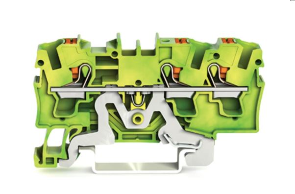 Our ground terminal block (item number 2204-1307) ensures effortless electrical installations. Ground terminal blocks connect directly to the mounting rail via an integrated contact foot. This creates an electrical and mechanical link between the electrical conductors and the mounting adapter. Strip lengths must be between 11 mm and 13 mm when connecting conductors to this ground terminal block. This product features conductor terminals and utilizes Push-in CAGE CLAMP®. Push-in CAGE CLAMP® technology provides a universal connection solution for any type of conductor. It allows both solid and fine-stranded conductors with ferrules to be inserted directly into the clamping point without the need for tools. This ground terminal block is suitable for conductor cross sections ranging from 0.5 mm² to 6 mm². It has one level. The single potential can connect using the three clamping points The green-yellow housing is made of polyamide (PA66) for insulation. This through rail-mount terminal block is operated with a push-button. Our TOPJOB® S rail-mount terminal blocks offer more than just secure electrical connections in various industrial applications and modern building installations. They also offer the perfect solution for every use: lever, push-button, or operating slot. These through rail-mount terminal blocks are mounted using DIN-35 rails.. The front-entry wiring makes it possible to connect copper conductors. The two jumper slots enable potential distribution to other clamping points. This product is designed for specific Ex applications (please refer to the product datasheet).