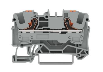 This through terminal block (item number 2206-1201) is designed for quick and simple connections. Whether in industrial or building applications, our rail-mount through terminal blocks are the perfect solution to quickly and securely connect electrical conductors. Depending on the variant, you can use them for either typical through-wiring or potential distribution. Rated current and voltage are important parameters when choosing a through rail-mount terminal block, as they determine the product's suitability for different applications. This product has a rated voltage of 800 V and a rated current of 41 A. Conductors can only be connected to this through terminal block if their strip length is between 13 mm and 15 mm. Featuring conductor terminals along with Push-in CAGE CLAMP®, this product is highly versatile. Our Push-in CAGE CLAMP® is a universal, maintenance-free connection solution for all conductor types, offering a key advantage: It allows direct insertion of both solid and fine-stranded conductors with ferrules without needing tools. No preparation is required; for example, crimping the conductor's ferrule is not necessary. Dimensions: 7.5 x 57.3 x 39.5 mm (width x height x depth). This through terminal block is suitable for conductor cross sections ranging from 0.5 mm² to 10 mm². It features one level and two clamping points for connecting a single potential. The gray housing is made of polyamide (PA66) for insulation. This through rail-mount terminal block is operated with a push-button. Our TOPJOB® S rail-mount terminal blocks offer more than just secure electrical connections in various industrial applications and modern building installations. They also offer the perfect solution for every need: lever, push-button, or operating slot. These through rail-mount terminal blocks are mounted using DIN-35 rails.. You can connect copper conductors via front-entry wiring. The two jumper slots enable potential distribution to other clamping points. This product is designed for specific Ex applications (please refer to the product datasheet).