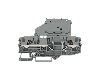 Our fuse terminal block (item number 2206-1611) makes connections quick and easy. Ensure that the strip lengths are between 13 mm and 15 mm when connecting conductors to this fuse terminal block. This product features conductor terminals and utilizes Push-in CAGE CLAMP®. Push-in CAGE CLAMP® connection technology is ideal for connecting all conductor types. It allows direct insertion of both solid and fine-stranded conductors with ferrules without needing to use any tools—all thanks to its pluggable design. Depending on the type of conductor, this fuse terminal block is ideal for conductor cross sections ranging from 0.5 mm² to 10 mm². It has one level. The single potential can connect using the two clamping points The gray housing is made of polyamide (PA66) for insulation. These function terminal blocks are mounted using DIN-35 rails.