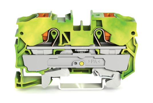 This ground terminal block (item number 2210-1207) streamlines wire connections, making them both quick and easy. Ground terminal blocks connect directly to the mounting rail via an integrated contact foot. This creates an electrical and mechanical link between the electrical conductors and the mounting adapter. Strip lengths must be between 17 mm and 19 mm when connecting conductors to this ground terminal block. This product features conductor terminals and utilizes Push-in CAGE CLAMP®. Our Push-in CAGE CLAMP® is a universal, maintenance-free connection solution for all conductor types, featuring a winning design: It allows direct insertion of both solid and fine-stranded conductors with ferrules without needing tools. No preparation is required; for example, crimping the conductor's ferrule is not necessary. This ground terminal block is suitable for conductor cross sections ranging from 0.5 mm² to 16 mm². It has one level. The single potential can connect using the two clamping points The green-yellow housing is made of polyamide (PA66) for insulation. This through rail-mount terminal block is operated with a push-button. Our TOPJOB® S rail-mount terminal blocks are perfect for a wide range of industrial applications and modern building installations thanks to the secure electrical connections they provide. You can work anywhere in the world and on any application with just a single rail-mount terminal block system. These through rail-mount terminal blocks are mounted using DIN-35 rails.. The front-entry wiring means you can connect copper conductors. The two jumper slots enable potential distribution to other clamping points. This product is designed for specific Ex applications (please refer to the product datasheet).