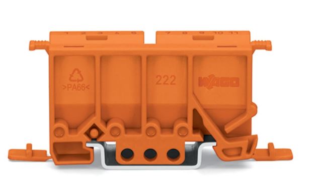 Wago, 222-500, 222 Series, Orange, Mounting Carrier, For DIN-35 Rail Mounting/Screw Mounting