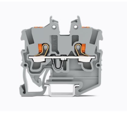 Our through terminal block (item number 2250-1201) is designed for seamless electrical installations. Our mini rail-mount terminal blocks are the perfect choice for working in confined spaces. A large selection of mounting and actuation variants means you can find a suitable mini terminal block for every purpose. This also means you can adapt the terminal blocks to your unique requirements. Our mini rail-mount terminal block is rated for 500 V and is designed to handle a rated current of up to 13.5 A. Strip lengths must be between 9 mm and 11 mm when connecting conductors to this through terminal block. This product features conductor terminals and utilizes Push-in CAGE CLAMP®. Our Push-in CAGE CLAMP® is a universal, maintenance-free connection solution for all conductor types, boasting a key feature: It allows direct insertion of both solid and fine-stranded conductors with ferrules without needing tools. No preparation is required; for example, crimping the conductor's ferrule is not necessary. This through terminal block is suitable for conductor cross sections ranging from 0.14 mm² to 1.5 mm². It has one level. You can connect a single potential using the two clamping points. The gray housing is made of polyamide (PA66) for insulation. A push-button is used to operate this mini rail-mount terminal block. Our TOPJOB® S rail-mount terminal blocks guarantee reliable electrical connections across many industrial applications and modern building installations. They simplify wiring, as you can quickly plug in solid, stranded, and fine-stranded conductors with ferrules. These mini rail-mount terminal blocks are mounted using DIN-15 rails.. The front-entry wiring makes it possible to connect copper conductors. The one jumper slot enables potential distribution to other clamping points. This product is designed for specific Ex applications (please refer to the product datasheet).