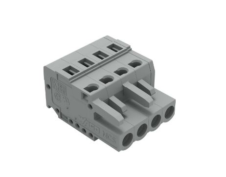 The female connector/socket with the item number 231-104/026-000 creates a clean, tidy electrical installation. Our PCB connectors give you the greatest possible flexibility for a variety of mounting options. This female connector/socket requires a stripping length of 8 to 9 mm for wire connection. This product is based on CAGE CLAMP® technology. The CAGE CLAMP® universal connector provides you with a reliable and maintenance-free connection technology for connecting all types of conductors using a cage clamp. No pretreatment of the conductors, such as crimping on wire end ferrules, is necessary. The dimensions are width x height x depth (21.5 x 14.3 x 26.45) mm. This female connector/socket is suitable for wire cross-sections from 0.08 mm² to 2.5 mm², depending on the conductor type. The contact surface is tin. This female connector/socket is operated using an operating tool. WAGO's MCS – "Multi Connection System" comprises a total of seven families with pitches from 2.5 mm to 10.16 mm and offers a wide range of application possibilities with a conductor cross-section range from 0.08 to 25 mm².