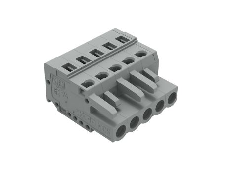 The female connector/socket with the article number 231-105/026-000 enables tidy electrical installation. With our PCB connectors, you get a universal connector system that can be used in a variety of ways: as a PCB connector, as a feed-through connector, as a floating connection for various mounting types, or as a connector on terminal blocks. For conductor connection, this female connector/socket requires stripping lengths of 8 to 9 mm. This product utilizes CAGE CLAMP® technology. The CAGE CLAMP® universal connection provides you with a reliable and maintenance-free connection technology for connecting all conductor types using a cage clamp. No pretreatment of the conductors, such as crimping on wire end ferrules, is necessary. The dimensions are (width x height x depth) (26.5 x 14.3 x 26.45) mm. This female connector/socket is suitable for conductor cross-sections from 0.08 mm² to 2.5 mm², depending on the conductor type. Tin was used for the contact surface. This female connector/socket is actuated using an actuation tool. WAGO's MCS - "Multi Connection System" comprises a total of seven families with pitches from 2.5 mm to 10.16 mm and offers a wide range of application possibilities with a conductor cross-section range from 0.08 to 25 mm².