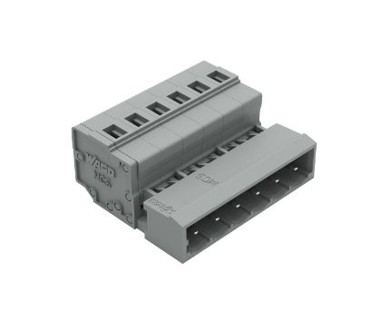 The pin header with the article number 231-606 offers neat electrical installation. With our printed circuit board connectors, you get a universal connector system that can be used in a variety of ways: as a printed circuit board connector, as a feed-through connector, as a flying lead for various mounting types, or as a connector on terminal blocks. This pin header requires a stripping length of between 8 and 9mm for the conductor connection. This product is equipped with CAGE CLAMP® technology. The reliable and maintenance-free CAGE CLAMP® universal connection offers the option of connecting all types of conductors with a cage clamp without the need for pre-treatment of the conductors. This eliminates the need to crimp on wire end ferrules. The dimensions (width x height x depth) are (33.2 x 14.3 x 27.5mm0. Depending on the conductor type, this pin header is designed for conductor cross-sections from 0.08mm² to 2.5mm². The contact surface is tin-plated. This pin header/connector is actuated using an operating tool. WAGO's MCS – "Multi Connection System" – is a versatile connector system for your consistent system wiring. It enables simplified wiring in cable pre-assembly and on devices thanks to two actuation directions for the CAGE CLAMP® variants.