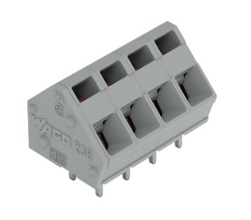 Easily, quickly and safely connect conductors with this PCB terminal block (item number 236-402). It is a universal connector that can be used practically anywhere, e.g., as a pluggable PCB connector, panel feedthrough header, connector for rail-mount terminal blocks, or a floating connector for different mounting methods. Rated current and voltage are important parameters when selecting a PCB terminal block, as they indicate possible applications and uses. This product has a rated voltage of 320V and a rated current of 24A, making it suitable for high-load applications. Ensure that the strip lengths are between 5mm and 6mm when connecting conductors to this PCB terminal block. Featuring one conductor terminal along with CAGE CLAMP®, this connector delivers reliable performance. Our trusted universal connection known as CAGE CLAMP® leads the way when it comes to connection technology and electrical interconnections. The dimensions are 12.3 x 17 x 14mm (width x height x depth). Depending on the type of conductor, this PCB terminal block is ideal for conductor cross sections ranging from 0.08 mm² to 2.5mm². It comes with one level and two clamping points that you can use to connect two potentials / 2 poles. The clamping spring is made of chrome-nickel spring steel (CrNi), the gray housing is made of polyamide (PA66) for insulation, and the contacts are made of electrolytic copper (ECu). Tin is used for coating the contact surfaces. This PCB terminal block is operated with an operating tool. The PCB terminal block is designed for THT soldering. Insert the conductor into the board at a 45° angle.. The solder pins measure 0.7 x 0.7mm in cross-section and 4 mm in length and are organized over the entire terminal strip (in-line). There are two solder pins per potential.