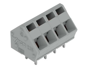 Connect conductors quickly and securely with this PCB terminal block (item number 236-412). It is a universal connector that can be used practically anywhere, e.g., as a pluggable PCB connector, panel feedthrough header, connector for rail-mount terminal blocks, or a floating connector for different mounting methods. Our PCB terminal block is rated for 320V and is designed for use with a rated current of up to 24A. As such, it is suitable for high-load applications. Strip lengths must be between 5mm and 6mm when connecting conductors to this PCB terminal block. This product features one conductor terminal and utilizes CAGE CLAMP®. Our CAGE CLAMP® connection provides a safe and maintenance-free way to connect all types of conductors. You do not need to prepare the conductor in any way, such as crimping ferrules. Dimensions: 62.3 x 17 x 14mm (width x height x depth). This PCB terminal block is suitable for conductor cross sections ranging from 0.08mm² to 2.5mm². It features one level and twelve clamping points that you can use to connect twelve potentials / 12 poles. The contacts are made of electrolytic copper (ECu), the gray housing is made of polyamide (PA66) for insulation, and the clamping spring is made of chrome-nickel spring steel (CrNi). Tin is used for coating the contact surfaces. An operating tool is used to operate this PCB terminal block. The PCB terminal block is designed for THT soldering. Insert the conductor at a 45° angle.. The solder pins measure 0.7 x 0.7mm in cross-section and 4 mm in length and are arranged over the entire terminal strip (in-line). There are two solder pins per potential.