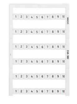 Wago, 248-571, Mini-WSB Marking Card, Horizontal Marking, Numbered 71-80, 5mm Wide, Snap-on Type, White, Card = 10 Strips Of 10 Markers Per Card