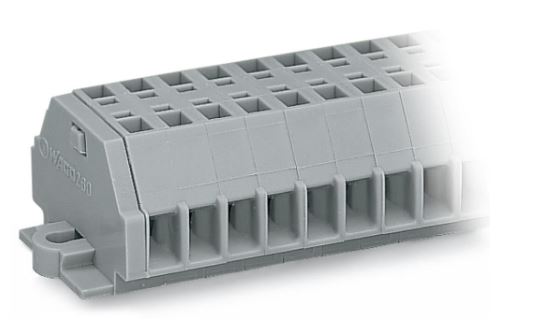 Wago, 260-105, 260 Series, Grey, 1.5mm², 5-pole Terminal Strip, With Fixing Flanges, Push-in CAGE CLAMP®, 400V, 18 Amps,