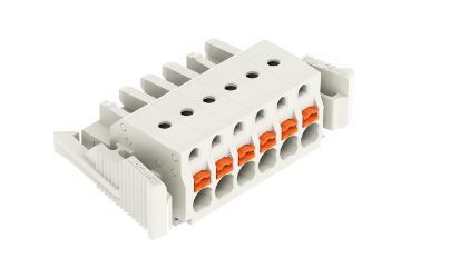 The female connector/socket has the article number 2721-106/037-000 and ensures a smooth electrical installation. Rely on reliable safety when designing your device: PCB connectors offer a variety of application options. For conductor connection, this female connector/socket requires stripping lengths of 10 to 11mm. This product is equipped with Push-in CAGE CLAMP® technology. Push-in CAGE CLAMP® connection technology ensures perfect connection of all conductor types. The additional benefit of direct mating allows conductors with sufficient kink resistance as well as fine-stranded conductors with ferrules to be mated without tools. The dimensions are (width x height x depth) (46.7 x 15 x 29.8mm). This female connector/socket is suitable for conductor cross-sections from 0.2mm² to 2.5mm², depending on the conductor type. The contact surface is tin. This female connector/socket is actuated by a push-button. WAGO's MCS – "Multi Connection System" – is a versatile connector system for your consistent system wiring. It enables simplified wiring in cable pre-assembly and on devices thanks to two actuation directions for the CAGE CLAMP® variants.