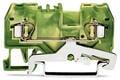 Our ground terminal block (item number 280-907) is designed for seamless electrical installations. Our ground terminal blocks allow you to connect electrical conductors directly to the mounting rail thanks to an integrated contact foot. This connection ensures both electrical and mechanical stability between the conductors and the mounting adapter. Ensure that the strip lengths are between 8mm and 9mm when connecting conductors to this ground terminal block. This product features conductor terminals and utilizes CAGE CLAMP®. Our reliable and maintenance-free CAGE CLAMP® connection makes it easy to connect all conductor types without having to prepare the conductor. For example, you don't need to crimp ferrules. This ground terminal block is suitable for conductor cross sections ranging from 0.08mm² to 2.5mm². It has one level. You can connect a single potential using the two clamping points. The green-yellow housing is made of polyamide (PA66) for insulation. An operating tool is used to operate this through rail-mount terminal block. These through rail-mount terminal blocks are mounted using DIN-35 rails.. You can connect copper, aluminum conductors thanks to front-entry wiring.