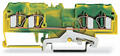Easily, quickly and safely connect conductors with this ground terminal block (item number 281-657). Our ground terminal blocks create a direct connection between the mounting rail and the electrical conductors thanks to an integrated mounting foot. This connection ensures both electrical and mechanical stability between the conductors and the mounting adapter. Conductors can only be connected to this ground terminal block if their strip length is between 9mm and 10mm. This product incorporates conductor terminals and utilizes CAGE CLAMP®. Our tried-and-tested universal connection known as CAGE CLAMP® is the industry standard for connection technology and electrical interconnections. Depending on the conductor type, this ground terminal block is ideal for conductor cross sections ranging from 0.08mm² to 4mm². It comes with one level and four clamping points that you can use to connect a single potential. The green-yellow housing is made of polyamide (PA66) for insulation. An operating tool is used to operate this through rail-mount terminal block. These through rail-mount terminal blocks are mounted using DIN-35 rails.. The front-entry wiring allows you to connect copper, aluminum conductors.