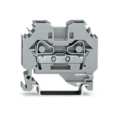 This through terminal block (item number 282-101) is designed to connect conductors quickly and easily. Whether in industrial or building applications, our rail-mount through terminal blocks are the perfect solution to quickly and securely connect electrical conductors. Depending on the version, you can use them for either typical through-wiring or potential distribution. Rated current and voltage are important parameters when selecting a through rail-mount terminal block, as they indicate possible applications and uses. This product has a rated voltage of 800V and a rated current of 41A. Ensure that the strip lengths are between 12mm and 13mm when connecting conductors to this through terminal block. This product features conductor terminals and utilizes CAGE CLAMP®. Our highly-rated and maintenance-free CAGE CLAMP® connection makes it easy to connect all types of conductors without having to prepare the conductor. For example, you don't need to crimp ferrules. This through terminal block is suitable for conductor cross sections ranging from 0.2mm² to 6mm². It features one level and two clamping points that you can use to connect a single potential. The gray housing is made of polyamide (PA66) for insulation. This through rail-mount terminal block is operated with an operating tool. These through rail-mount terminal blocks are mounted using DIN-35 rails.. The side-entry wiring means you can connect copper conductors.