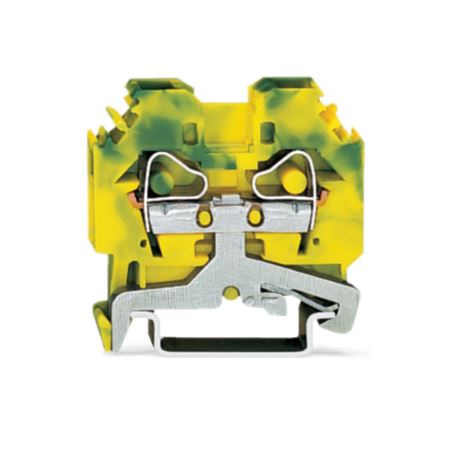 Easily, quickly and safely connect conductors with this ground terminal block (item number 282-107). Our ground terminal blocks create a direct connection between the mounting rail and the electrical conductors thanks to an integrated mounting foot. This connection ensures both electrical and mechanical stability between the conductors and the mounting adapter. Ensure that the strip lengths are between 12mm and 13mm when connecting conductors to this ground terminal block. Featuring conductor terminals along with CAGE CLAMP®, this product is highly versatile. Our highly-rated and maintenance-free CAGE CLAMP® connection makes it easy to connect all types of conductors without having to prepare the conductor. For example, you don't need to crimp ferrules. Depending on the type of conductor, this ground terminal block is suitable for conductor cross sections ranging from 0.2mm² to 6mm². It comes with one level and two clamping points that you can use to connect a single potential. The green-yellow housing is made of polyamide (PA66) for insulation. An operating tool is used to operate this through rail-mount terminal block. These through rail-mount terminal blocks are mounted using DIN-35 rails.. Conductors made of copper can be connected thanks to side-entry wiring.