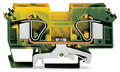 Connect conductors quickly and safely with this ground terminal block (item number 283-607). Ground terminal blocks connect directly to the mounting rail via an integrated contact foot. This creates an electrical and mechanical connection between the electrical conductors and the mounting adapter. Ensure that the strip lengths are between 16mm and 17mm when connecting conductors to this ground terminal block. This product features conductor terminals and utilizes CAGE CLAMP®. Our trusted universal connection known as CAGE CLAMP® leads the way when it comes to connection technology and electrical interconnections. Depending on the type of conductor, this ground terminal block is suitable for conductor cross sections ranging from 0.2mm² to 16mm². It has one level. The single potential can connect using the two clamping points The green-yellow housing is made of polyamide (PA66) for insulation. This through rail-mount terminal block is operated with an operating tool. These through rail-mount terminal blocks are mounted using DIN-35 rails.. You can connect copper conductors via front-entry wiring.