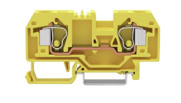 This through terminal block (item number 284-906) is designed to connect conductors quickly and easily. Whether for use in industry or building installations, our rail-mount through terminal blocks allow you to quickly and securely connect electrical conductors. They’re perfect for either classic through-wiring or distributing potential, depending on the variant. Rated current and voltage are key factors to consider when selecting a through rail-mount terminal block, as they indicate possible applications and uses. This product has a rated voltage of 800V and a rated current of 57A. Strip lengths must be between 12mm and 13mm when connecting conductors to this through terminal block. Featuring conductor terminals along with CAGE CLAMP®, this product delivers reliable performance. Our reliable and maintenance-free CAGE CLAMP® connection makes it easy to connect all conductor types without having to prepare the conductor. For example, you don't need to crimp ferrules. This through terminal block is suitable for conductor cross sections ranging from 0.2mm² to 10mm². It features one level and two clamping points for connecting a single potential. The yellow housing is made of polyamide (PA66) for insulation. An operating tool is used to operate this through rail-mount terminal block. These through rail-mount terminal blocks are mounted using DIN-35 rails.. You can connect copper conductors thanks to front-entry wiring.