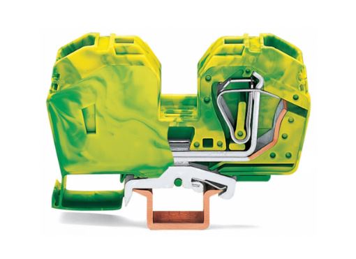 Our ground terminal block (item number 285-637) makes connections quick and easy. Ground terminal blocks connect directly to the mounting rail via an integrated contact foot. This creates an electrical and mechanical connection between the electrical conductors and the mounting adapter. Conductors can only be connected to this ground terminal block if their strip length is 23mm. Featuring conductor terminals along with CAGE CLAMP®, this product delivers reliable performance. Our proven universal connection known as CAGE CLAMP® is the industry standard when it comes to connection technology and electrical interconnections. This ground terminal block is suitable for conductor cross sections ranging from 6mm² to 35mm². It has one level. The single potential can connect using the two clamping points The green-yellow housing is made of polyamide (PA66) for insulation. An operating tool is used to operate this through rail-mount terminal block. These through rail-mount terminal blocks are mounted using DIN-35 rails.. Conductors made of copper can be connected via front-entry wiring.