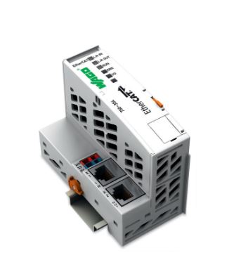 The EtherCAT® Fieldbus Coupler connects EtherCAT® to the modular WAGO I/O System. The fieldbus coupler detects all connected I/O modules and creates a local process image. This process image may include a mixed arrangement of analog (word-by-word data transfer) and digital (bit-by-bit data transfer) modules. The upper EtherCAT® interface connects the coupler to the network. The lower RJ-45 socket may connect additional EtherCAT® devices to the same line. EtherCAT®* (Ethernet Control Automation Technology) is a real-time ETHERNET solution designed for industrial automation applications and characterized by high performance, flexible topology and simple configuration. With EtherCAT®, the costly ETHERNET star topology can be replaced with a simple line or tree structure.