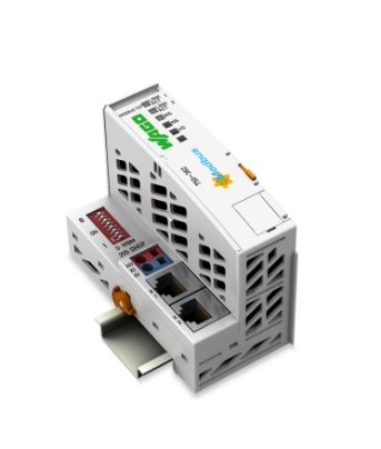 The 750-362 Modbus TCP/UDP Fieldbus Coupler connects ETHERNET to the modular WAGO I/O System. The fieldbus coupler detects all connected I/O modules and creates a local process image. Two ETHERNET interfaces and an integrated switch allow the fieldbus to be wired in a line topology, eliminating the need for additional network devices, such as switches or hubs. Both interfaces support autonegotiation and Auto-MDI(X).