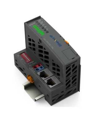 The 750-363/040-000 EtherNet/IPTM Fieldbus Coupler connects the EtherNet/IPTM fieldbus system to the modular WAGO I/O System. The fieldbus coupler detects all connected I/O modules and creates a local process image. Two ETHERNET interfaces and an integrated switch allow the fieldbus to be wired in a line topology, eliminating the need for additional network devices, such as switches or hubs. Both interfaces support autonegotiation and Auto-MDI(X). The DIP switch configures the last byte of the IP address and may be used for IP address assignment (DHCP, BootP, static). The coupler is designed for fieldbus communication in EtherNet/IPTM networks. It also supports a wide variety of standard ETHERNET protocols (e.g., HTTP(S), BootP, DHCP, DNS, SNMP, (S)FTP). An integrated Webserver provides user configuration options, while displaying the coupler's status information. The system supply is provided directly by the coupler. The field supply is provided via a separate supply module.