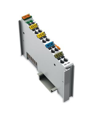 This analog input module processes standard ±10 V signals. The input signal is electrically isolated and is transmitted with a resolution of 12 bits. The internal system supply powers the module. The input channels of the module are differential inputs. The shield directly connects to the DIN-rail.