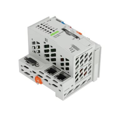 The PFC300 Controller is a compact controller designed for the modular WAGO I/O System. In addition to network and fieldbus interfaces, it supports digital and analog modules as well as specialty modules from the 750/753 Series. Two Ethernet interfaces with an integrated switch enable line topology wiring or communication across two separate networks in distinct modes. An integrated Webserver provides user configuration options, while displaying PFC300 status information. In addition to the process industry and building automation, typical applications for the PFC300 include standard machinery and equipment control – such as packaging, bottling, and manufacturing systems, as well as textile, metal, and wood processing machines.