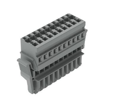Our female connector (item number 769-110/021-000) ensures effortless electrical installations. Pluggable rail-mount terminal blocks are mainly used in switchgear units and control systems (e.g., in railroad technology). They are essentially a combination of rail-mount terminal blocks and pluggable connectors. You can also pre-assemble installations thanks to the variable wiring system. This saves both time and money during manufacture, installation, operation, and maintenance. This pluggable rail-mount terminal block has a rated voltage of 500 V and can handle currents up to 32 A. Conductors should only be connected to this female connector if their strip length is between 8 mm and 9 mm. This product features conductor terminals and utilizes CAGE CLAMP®. Our reliable and maintenance-free CAGE CLAMP® connection makes it easy to connect all conductor types without having to prepare the conductor. For example, you don't need to crimp ferrules. The dimensions are 65 x 45.2 x 18.3 mm (width x height x depth). This female connector is suitable for conductor cross sections ranging from 0.08 mm² to 4 mm². You can connect ten potentials / ten poles using the ten clamping points. The gray housing is made of polyamide (PA66) for insulation. This female connector/socket is operated with an operating tool. The front-entry wiring allows you to connect copper conductors.