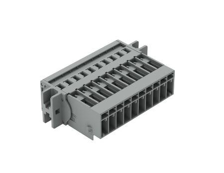 This male connector (item number 769-610/002-000) simplifies electrical installations. Pluggable rail-mount terminal blocks are hugely popular in switchgear and control systems, for example, in railroad technology. They combine the best of rail-mount terminal blocks and connectors to create the perfect solution. Variable wiring systems make pre-assembly easy, which saves both time and money in production, installation, operation, and maintenance. Our pluggable rail-mount terminal block is rated for 500 V and is designed to handle a rated current of up to 32 A. Strip lengths must be between 8 mm and 9 mm when connecting conductors to this male connector. This product features conductor terminals and utilizes CAGE CLAMP®. Our proven universal connection known as CAGE CLAMP® is the industry standard for connection technology and electrical interconnections. Depending on the type of conductor, this male connector is ideal for conductor cross sections ranging from 0.08 mm² to 4 mm². You can connect ten potentials / ten poles using the ten clamping points. The gray housing is made of polyamide (PA66) for insulation. This male connector/plug is operated with an operating tool. The front-entry wiring makes it possible to connect copper conductors.