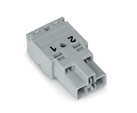 Use effective pluggable connections instead of laborious screw connections: With the WINSTA® MIDI male connector/plug 2-pole. WAGO pluggable installation connectors are used when criteria repeat or are planned on a defined grid, for example for installing grid lighting or flush-mount lighting. The color coding and mechanical coding of the pluggable installation connector ensure error-free installation of the individual components – including protection against mismating. The pluggable installation connector is protected against ingress by solid objects in accordance with protection type IP20 (When mated and secured with a strain relief housing: IP2xC (These compact connectors are not designed for use in open, easily accessible areas!)). Pluggable installation connectors with B coding from the WINSTA® MIDI line are available in gray, light green, or pink, allowing you to distinguish different circuits, for example for light, pumps or, sun blinds. Your own pole marking is possible as well. This pluggable installation connector is used for electrical currents up to 25 A. Thus the product is especially suitable for high power loads. The WINSTA® MIDI Pluggable Connection System with Push-in CAGE CLAMP® spring pressure connection technology facilitates safe electrification. Thanks to the integrated test slot, it is possible to check connections even when they are plugged in. That saves time and reduces installation labor and costs. Push-in CAGE CLAMP® spring pressure connection technology – pluggable installation instead of laborious screw connections!