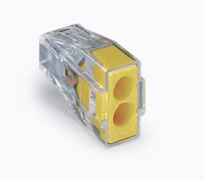 Fault-free electrical installations are guaranteed with push wire® splicing connector (item number 773-102). This series of PUSH WIRE® connectors ensures safe and quick connections in both surface-mounted and flush-mounted junction boxes in any building, regardless of installation complexity. This splicing connector has a rated voltage of 400 V and can handle currents up to 24 A, making it ideal for high-load applications. Strip lengths must be 12 mm when connecting conductors to push wire® splicing connector. This product features conductor terminals and utilizes PUSH WIRE®. Our proven PUSH WIRE® connection offers the fastest method for clamping conductors. It utilizes the conductor's stiffness to overcome the clamping spring's contact force. Dimensions: 9.2 x 13.1 x 19.5 mm (width x height x depth). Push wire® splicing connector is suitable for conductor cross sections ranging from 0.75 mm² to 2.5 mm². The contact surface is coated with tin.