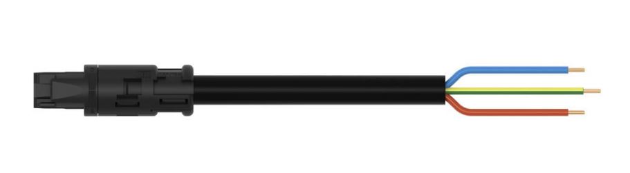 Wago, 774-9993/106-101, 774 Series, Black, Pre-assembled Connecting Cable, Eca Socket/open-ended, 3-pole, Coded A, H05VV-F 3G 1.5mm², 1m Long,