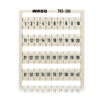 Wago, 793-566, WMB Marking Card, Horizontal Marking, Numbered 1-50 (x2), 5mm Wide, Snap-on Type, White, Card = 10 Strips Of 10 Markers Per Card