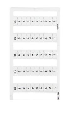 Wago, 793-602, WMB Marking Card, Vertical Marking, Numbered 1-10, 5mm Wide, Snap-on Type, White, Card = 10 Strips Of 10 Markers Per Card