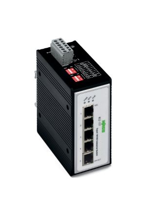 This unmanaged industrial ETHERNET switch (852-101) has five Fast ETHERNET ports for easily setting up small- to medium-sized networks. Its slim design paired with a DIN-rail adapter simplifies installation in the control cabinet and provides high vibration and shock resistance. Additionally, automatic transmission rate detection (auto-negotiation) and automatic identification of the transmit and receive lines (Auto MDI-X) allow simple plug-and-play operation, saving time and money during commissioning.